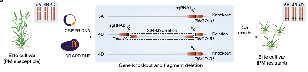 - Example: In 2014, researchers successfully targeted the MLO gene, which is linked to resistance against powdery mildew. By editing all three copies of the MLO gene (one on each chromosome), they created wheat plants with broad-spectrum disease resistance.