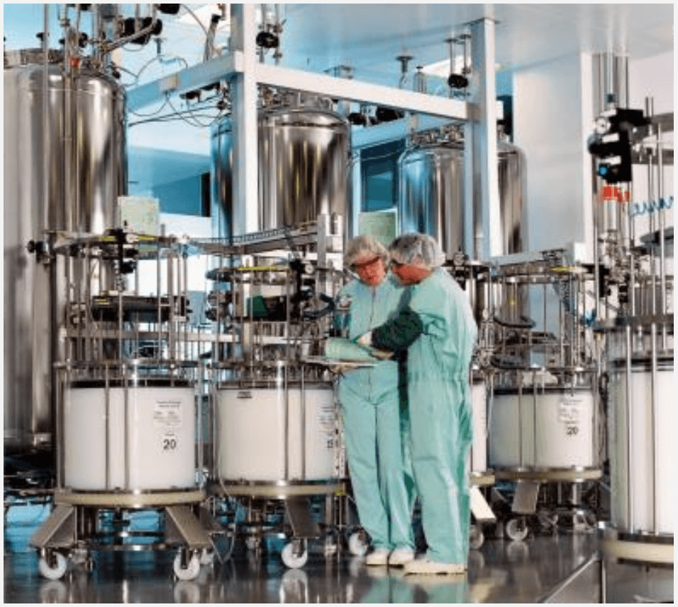 Most of the tech being used right now is borrowed from the pharmaceutical industry. Think giant, stirred tanks called bioreactors where cells swim around in a soupy liquid.